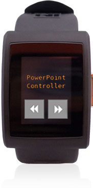 This app displays a next and a previous button. It also comes with a host-side python app that simulates left and right arrow key presses on the focused window. By clicking the button the slide will be advanced, while by click-holding will go to the previous slide.