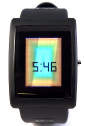 This app prints the current time over a dynamic pulsating psychedelic background. The button is used to toggle between normal and sleep modes. It is crazy cool and we really need a video to describe it better. And here it is: