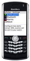 inPulse is the perfect BlackBerry smartphone accessory - it's a watch which connects wirelessly to your phone, alerting you instantly to incoming emails, SMS and calls. inPulse extends the functionality of your BlackBerry smartphone, so when you're in a pinch you can check your inPulse instead of fumbling around with your phone.